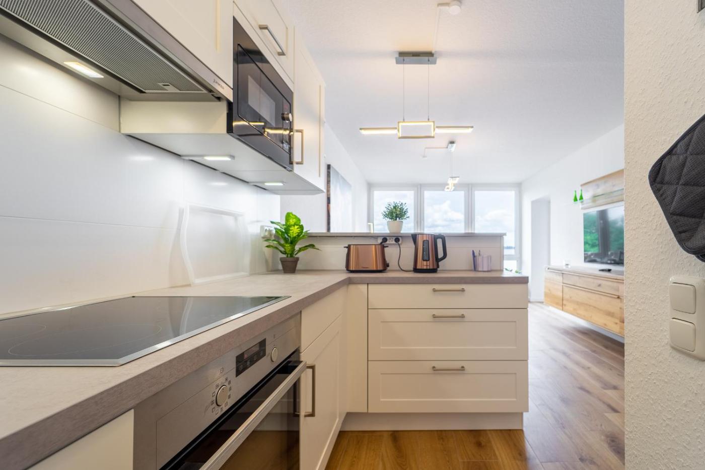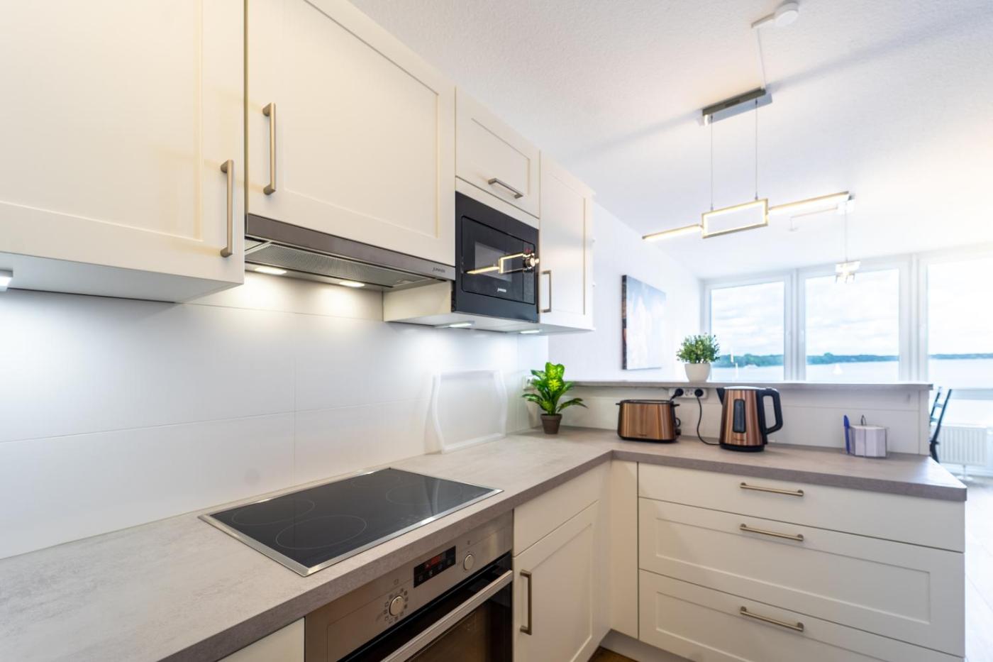 Apartment with Lake View. This apartment comprises a kitchen, a seating area, 1 separate bedroom and 1 bathroom with a shower and a hairdryer. The fully equipped kitchen features a stovetop, a refrigerator, a dishwasher and kitchenware. Featuring a balcony with lake views, this apartment also provides a coffee machine and a TV. The unit offers 1 bed.