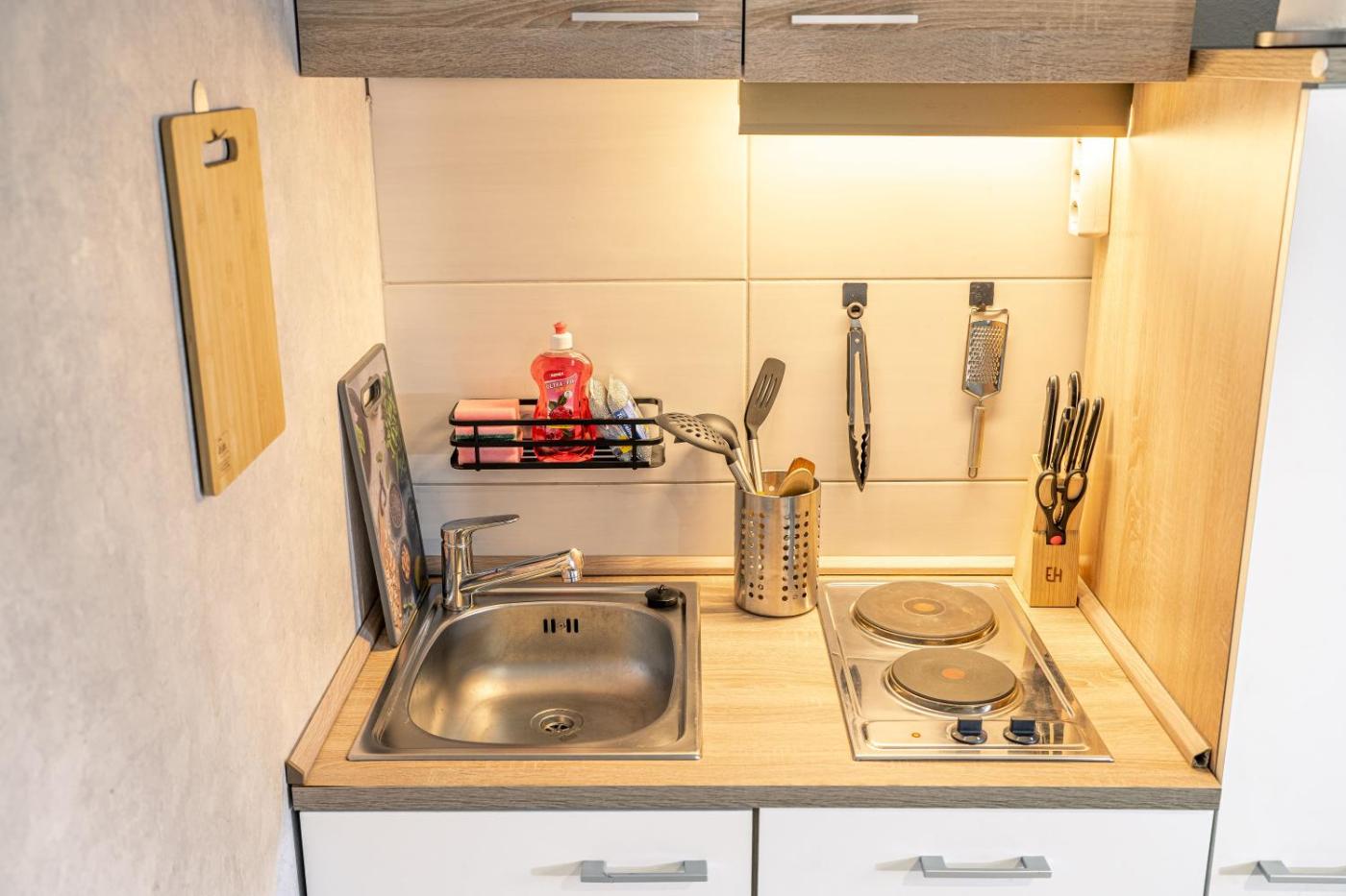 One-Bedroom Apartment. The apartment features 1 bedroom and 1 bathroom with a shower and free toiletries. In the fully equipped kitchen, guests will find a stovetop, a refrigerator, kitchenware and a tea and coffee maker. This apartment has a dining area, a wardrobe and a flat-screen TV with streaming services. The unit offers 1 bed. ;