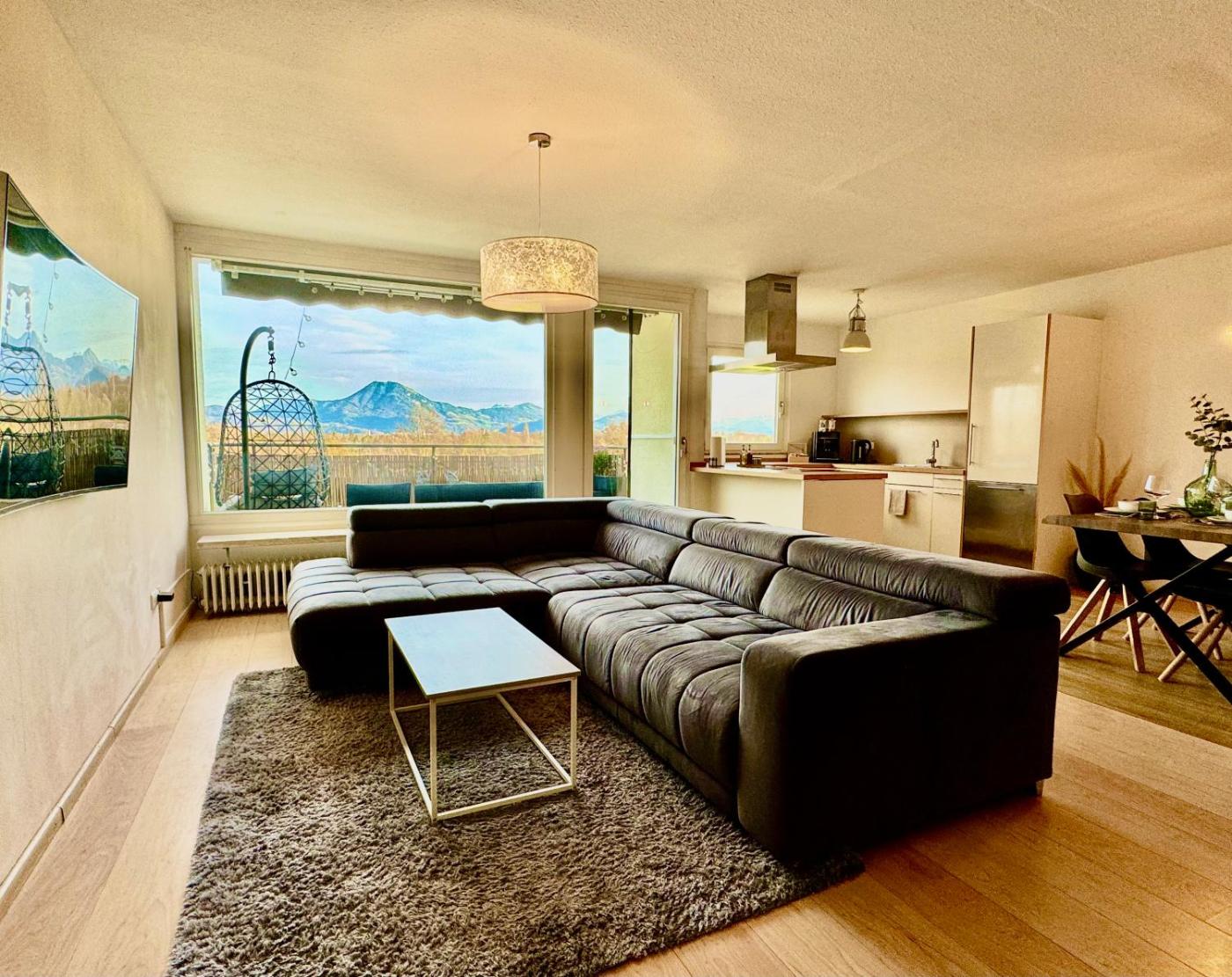 Apartment with View and Balcony. This spacious apartment features 1 living room, 2 separate bedrooms and 1 bathroom with a shower and free toiletries. The well-fitted kitchen has a stovetop, a refrigerator, a dishwasher and kitchenware. Boasting a balcony with mountain views, this apartment also features a tea and coffee maker and a TV. The unit has 4 beds.