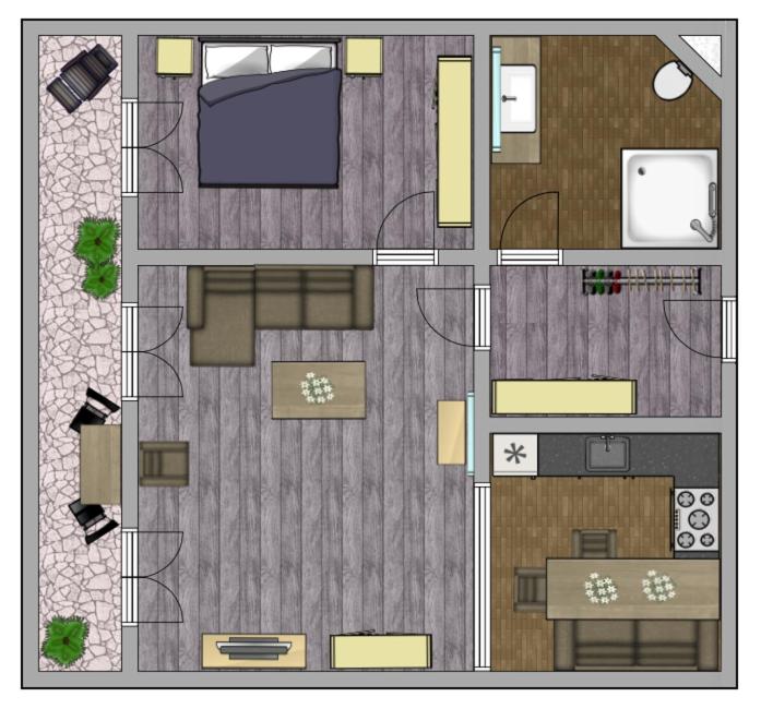 One-Bedroom Apartment. Featuring a private entrance, this spacious apartment also consists of 1 living room, 1 separate bedroom and 1 bathroom with a shower. Guests will find a stovetop, a refrigerator, a dishwasher and kitchenware in the kitchen. The apartment also offers a barbecue. Boasting a terrace with garden views, this apartment also provides a washing machine and a flat-screen TV with cable channels. The unit offers 2 beds.