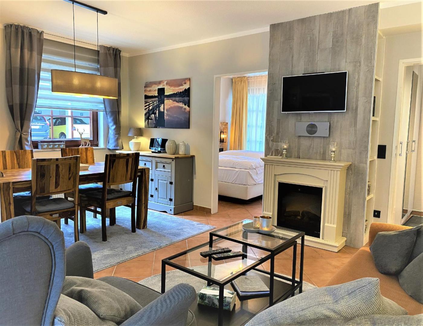 Apartment with Terrace. This apartments special feature is the fireplace. Featuring 1 bedroom, this apartment offers 1 bathroom with a shower, a seating area and terraceyou can relax. Guests will find a stovetop, a refrigerator, a dishwasher and kitchenware in the well-fitted kitchen. The apartment also provides guests with a barbecue. The apartment provides a flat-screen TV with cable channels, a washing machine, a tea and coffee maker, a wardrobe as well as garden views. The unit has 1 bed.