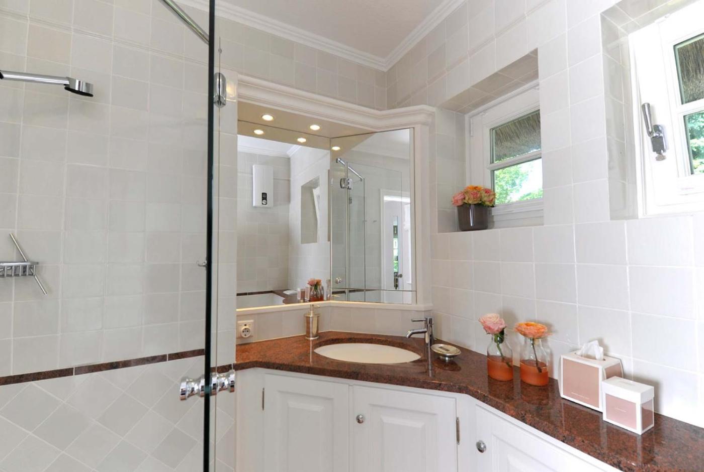 The holiday home comes with 2 bedrooms, a fully equipped kitchen with a dishwasher and an oven, a washing machine, and 2 bathrooms with bathrobes and a hair dryer. Towels and bed linen are provided in the holiday home. There is also a seating area and a fireplace.