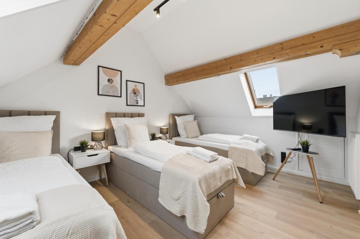 Two-Bedroom Apartment. The apartments kitchen is available for cooking and storing food. The spacious apartment features a washing machine, heating and a balcony. The unit has 5 beds.