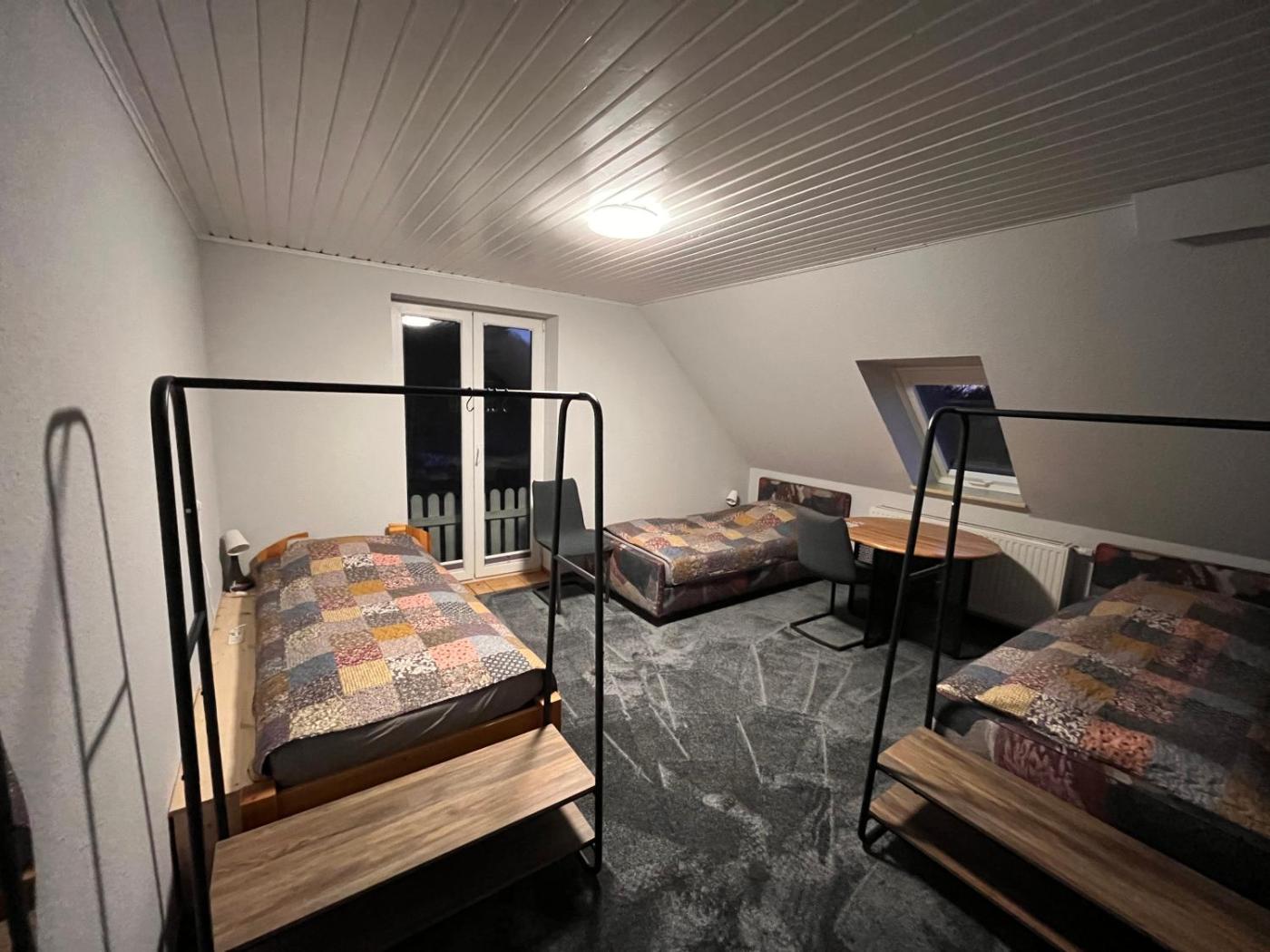 Triple Room with Shared Bathroom. The triple room includes a shared bathroom equipped with a shower, a bidet and a hairdryer. The fully equipped kitchen features a stovetop, a refrigerator, a dishwasher and kitchenware. The triple room provides a tea and coffee maker, a carpeted floor, heating and a flat-screen TV with satellite channels. The unit offers 3 beds. ;