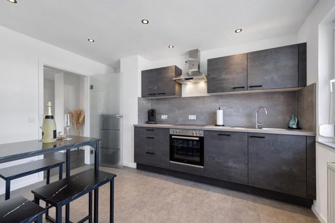 The holiday home with a balcony and garden views has 1 bedroom, a living room, a TV, an equipped kitchen with a dishwasher and an oven, and 1 bathroom with a shower. Towels and bed linen are offered in the holiday home. For added privacy, the accommodation features a private entrance.