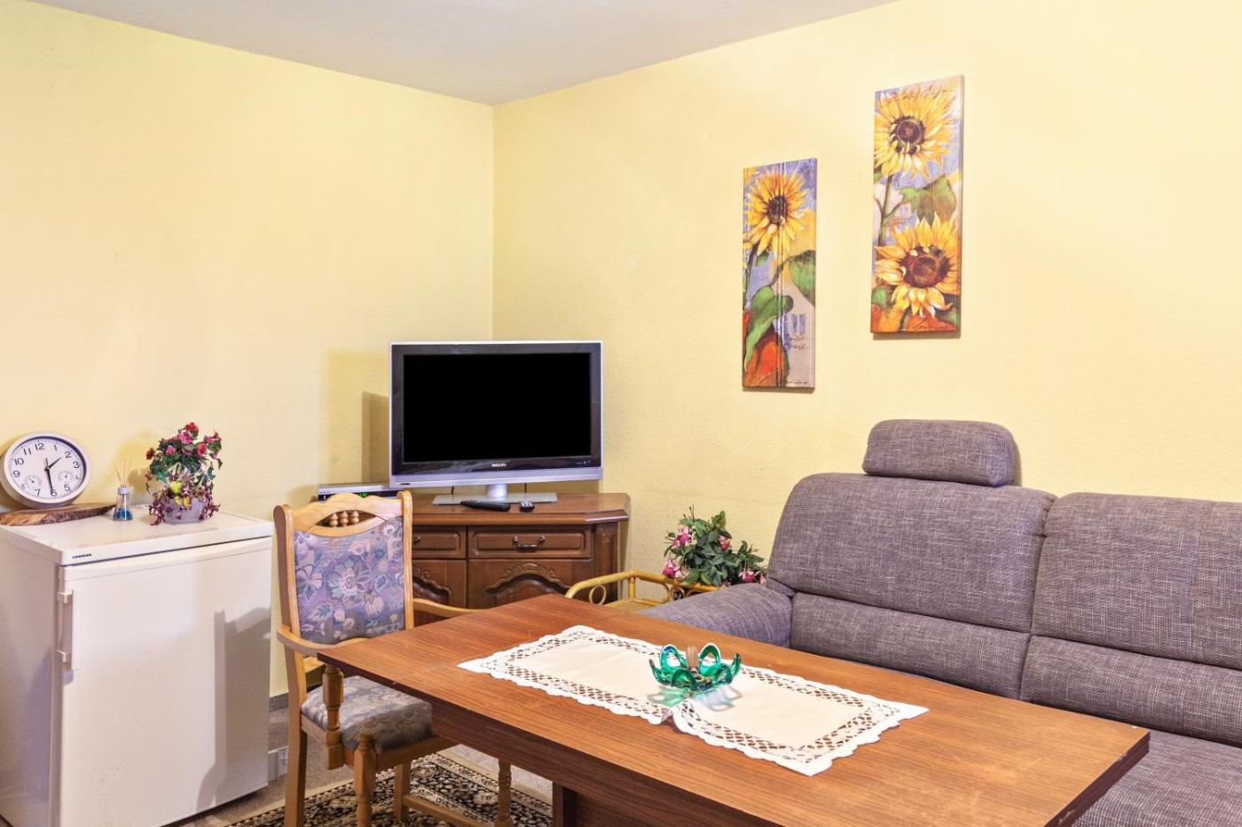One-Bedroom Apartment with Garden View. The apartment features 1 bedroom and 1 bathroom with a shower and free toiletries. The apartments kitchen, which has kitchenware, is available for cooking and storing food. The apartment offers a TV with satellite channels, a private entrance, a coffee machine, a high chair for children as well as garden views. The unit offers 2 beds. ;