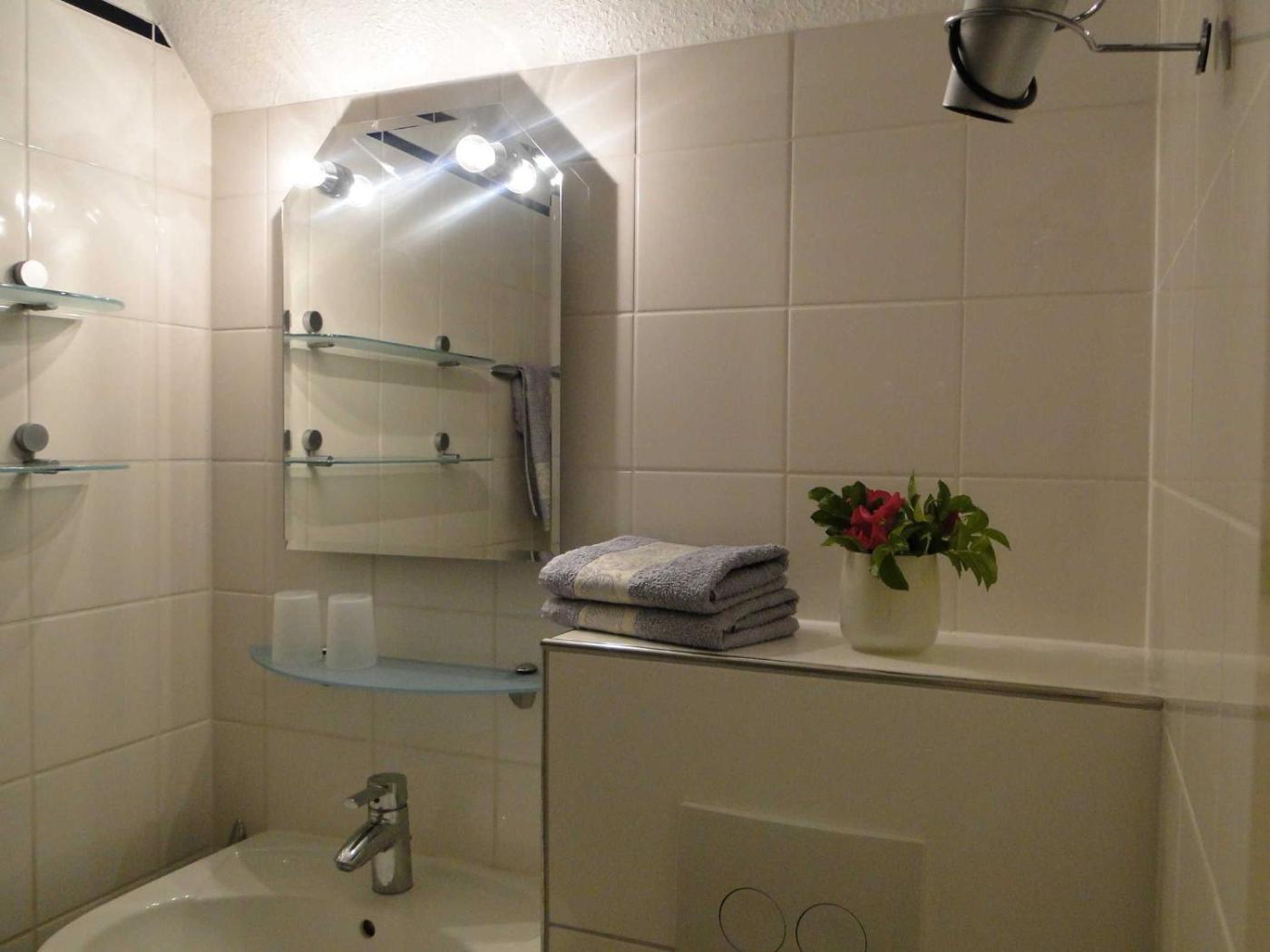 Apartment with Shower. This apartment includes 1 bedroom, a kitchen and 1 bathroom with a shower. The apartments kitchen is available for cooking and storing food.