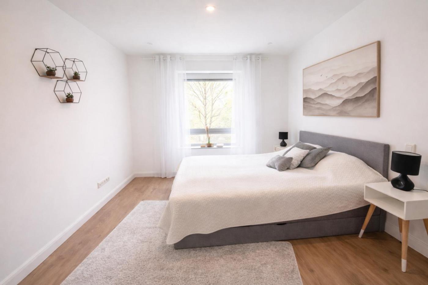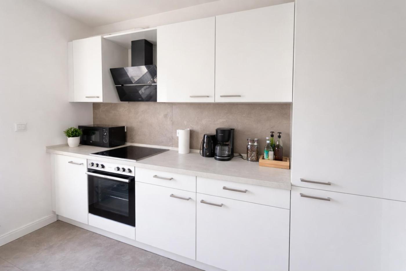 One-Bedroom Apartment. This apartment features 1 living room, 1 separate bedroom and 1 bathroom with a walk-in shower and free toiletries. In the fully equipped kitchen, guests will find a stovetop, a refrigerator, a dishwasher and kitchenware. This apartment has a washing machine, a tea and coffee maker, flat-screen TV, as well as winechampagne for guests. The unit has 3 beds.