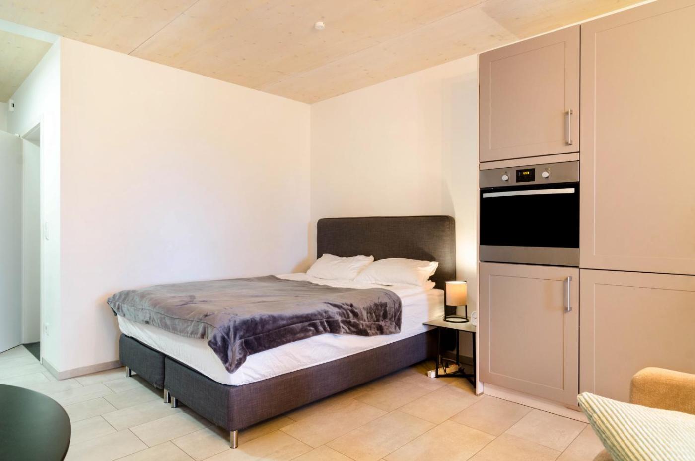 One-Bedroom Apartment with Garden View. The apartment has 1 bedroom and 1 bathroom with a shower and free toiletries. Guests can make meals in the kitchen that features a dishwasher, kitchenware, an oven and a toaster. This apartment features a private entrance, a coffee machine, a TV with cable channels and a patio. The unit has 1 bed.